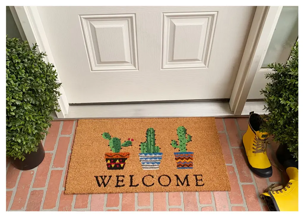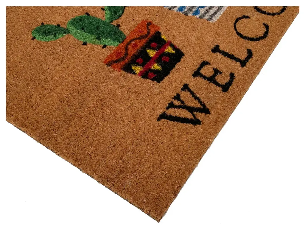 Made of natural coir, a dense fiber that is naturally mold and mildew resistant. Coir is a renewable resource that is durable and coarse, excellent for scraping shoes clean. Vinyl backed for increased durability and to help prevent movement, coir doormats are weather tolerant absorb moisture and retain their shape. For best results keep in a sheltered area such as a covered porch, keeping extreme moisture and sunlight to a minimum. Vacuum, sweep or lightly hose clean.