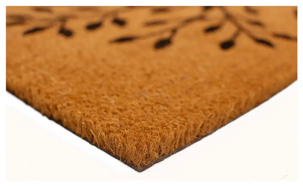 Made of natural coir, a dense fiber that is naturally mold and mildew resistant. Coir is a renewable resource that is durable and coarse, excellent for scraping shoes clean. Vinyl backed for increased durability and to help prevent movement, coir doormats are weather tolerant absorb moisture and retain their shape. For best results keep in a sheltered area such as a covered porch, keeping extreme moisture and sunlight to a minimum. Vacuum, sweep or lightly hose clean.