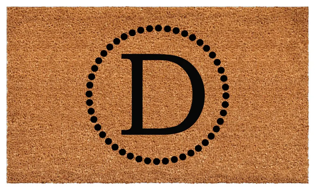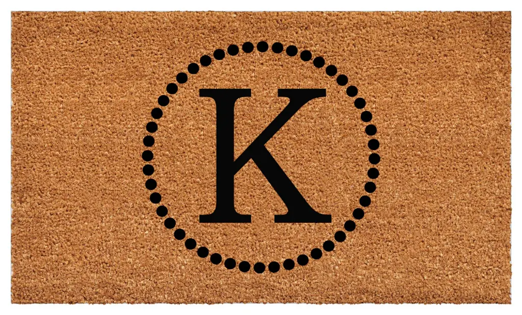 Durable, yet warm and inviting, this monogrammed doormat is an attractive, yet functional addition to any home decor. Made of heavy-duty rubber and natural coir that scrapes shoes clean, this resilient doormat absorbs moisture and stands up to foot traffic. Vacuum, sweep or lightly hose clean and allow to dry.