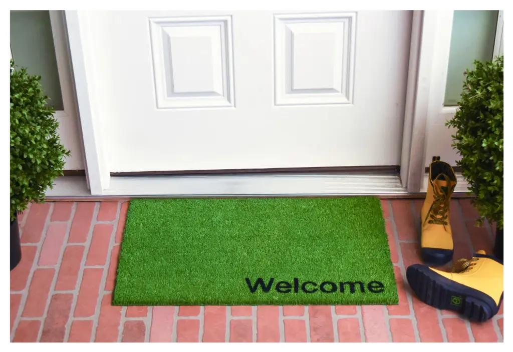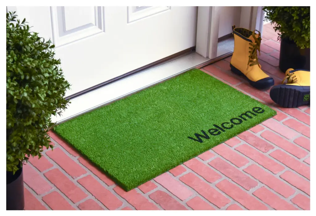 Made of natural coir, a dense fiber that is naturally mold and mildew resistant. Coir is a renewable resource that is durable and coarse, excellent for scraping shoes clean. Vinyl backed for increased durability and to help prevent movement, coir doormats are weather tolerant absorb moisture and retain their shape. For best results keep in a sheltered area such as a covered porch, keeping extreme moisture and sunlight to a minimum. Vacuum, sweep or lightly hose clean.