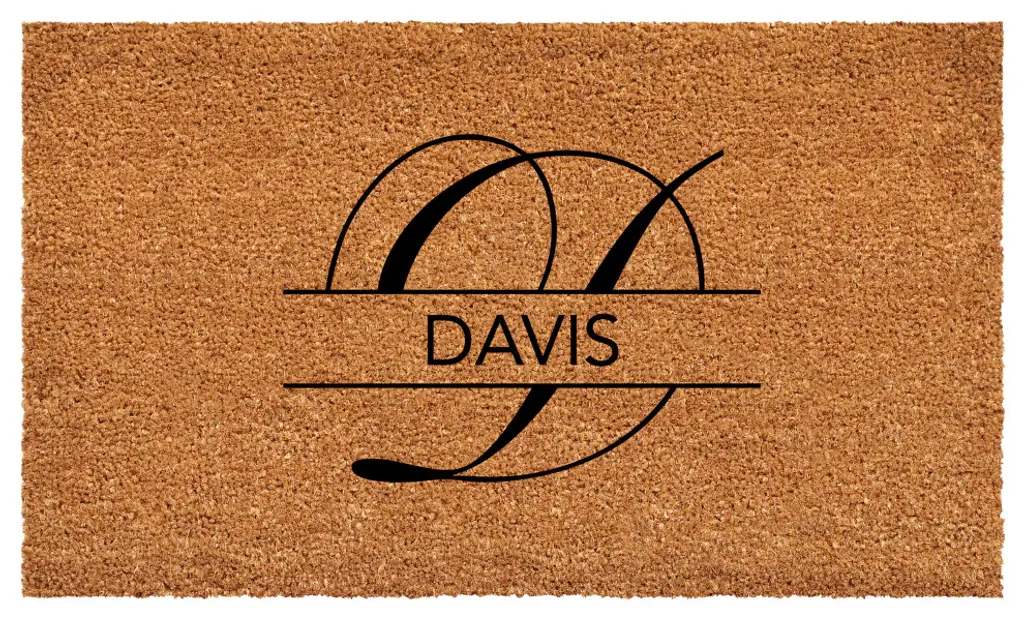 Durable, yet warm and inviting, this monogrammed doormat is a functional addition to any home decor. Made of heavy-duty rubber and natural coir that scrapes shoes clean, this resilient doormat absorbs moisture and stands up to foot traffic. Vacuum, sweep or lightly hose clean and allow to dry.