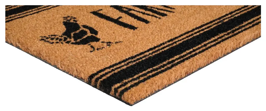 Made of natural coir, a dense fiber that is naturally mold and mildew resistant. Coir is a renewable resource that is durable and coarse, excellent for scraping shoes clean. Vinyl backed for increased durability and to help prevent movement, coir doormats are weather tolerant absorb moisture and retain their shape. For best results keep in a sheltered area such as a covered porch, keeping extreme moisture and sunlight to a minimum. Vacuum, sweep or lightly hose clean.