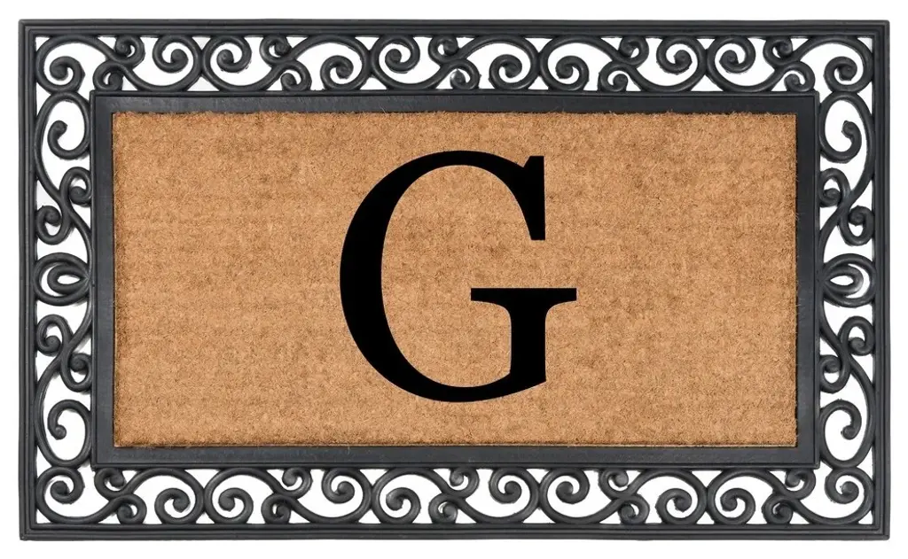 Durable, yet warm and inviting, this monogrammed doormat is a functional addition to any home decor. Made of heavy-duty rubber and natural coir that scrapes shoes clean and absorbs moisture, this beautiful doormat is exceptionally sturdy and stands up to traffic. For best results keep in a sheltered area such as a covered porch, keeping extreme moisture and sunlight to a minimum. Vacuum, sweep or lightly hose clean.