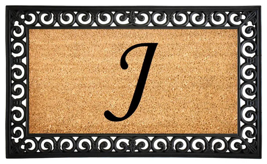 Durable, yet warm and inviting, this monogrammed doormat is a functional addition to any home decor. Made of heavy-duty rubber and natural coir that scrapes shoes clean and absorbs moisture, this beautiful doormat is exceptionally sturdy and stands up to traffic. For best results keep in a sheltered area such as a covered porch, keeping extreme moisture and sunlight to a minimum. Vacuum, sweep or lightly hose clean.