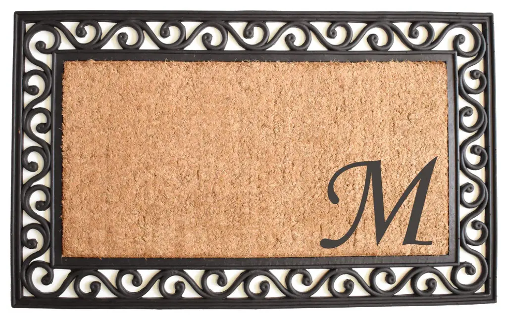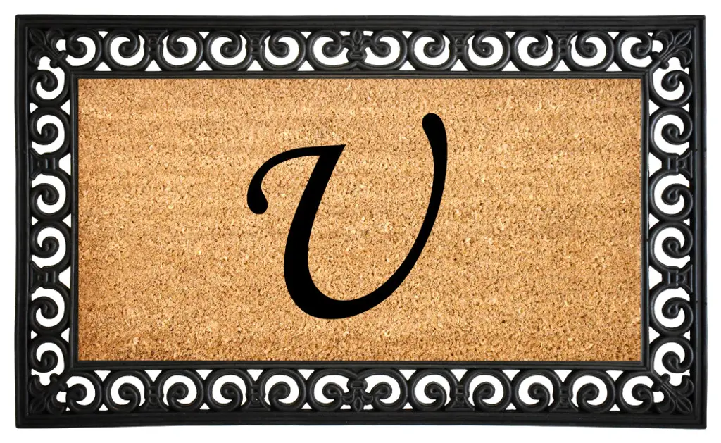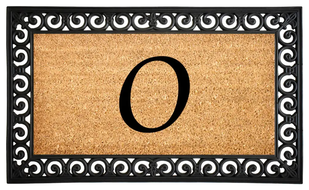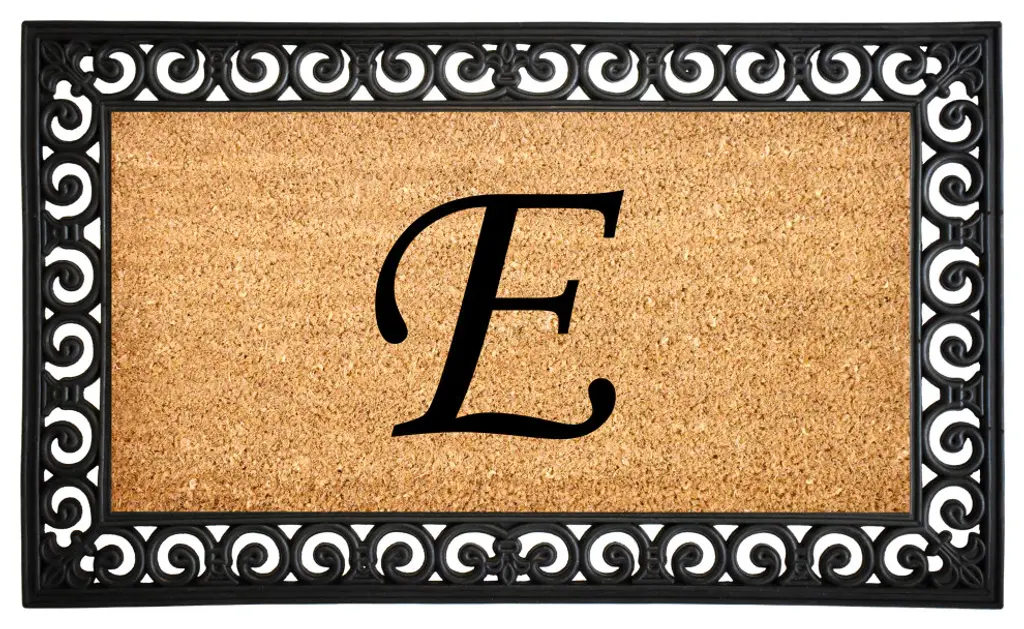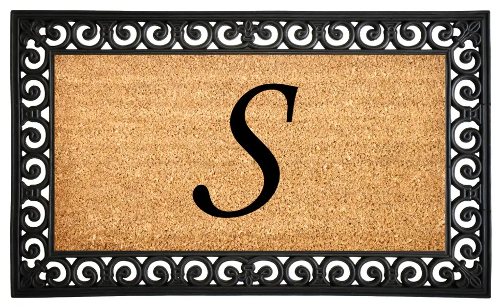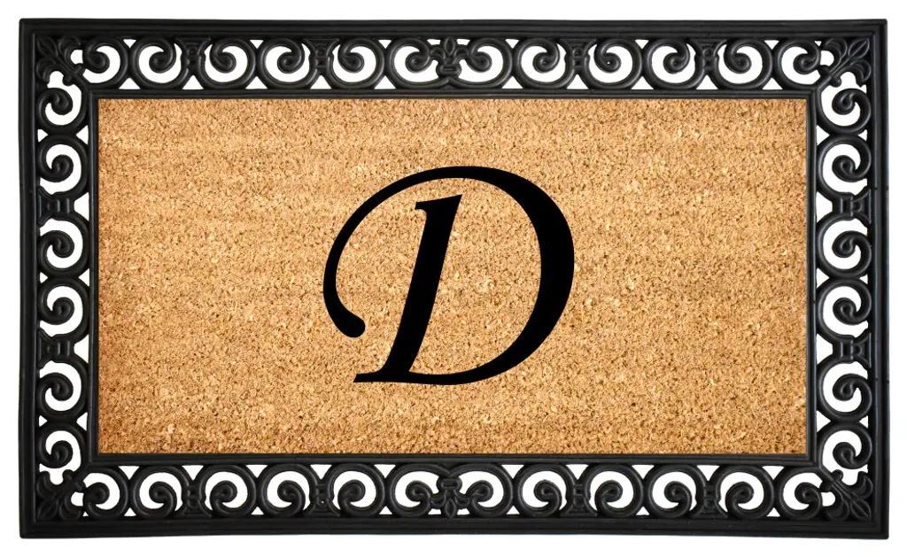 Durable, yet warm and inviting, this monogrammed doormat is a functional addition to any home decor. Made of heavy-duty rubber and natural coir that scrapes shoes clean and absorbs moisture, this beautiful doormat is exceptionally sturdy and stands up to traffic. For best results keep in a sheltered area such as a covered porch, keeping extreme moisture and sunlight to a minimum. Vacuum, sweep or lightly hose clean.