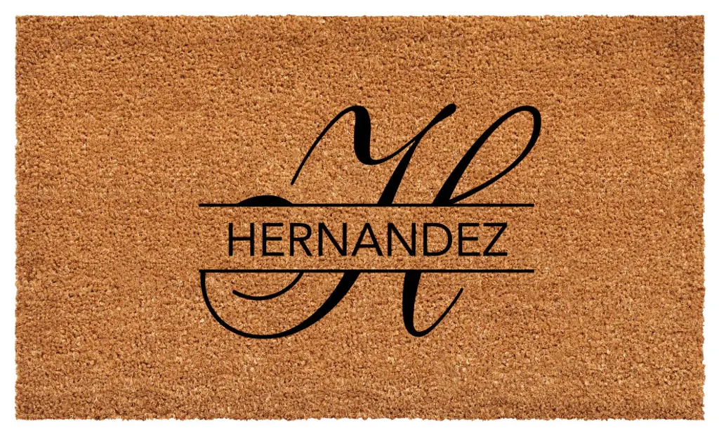 Durable, yet warm and inviting, this monogrammed doormat is a functional addition to any home decor. Made of heavy-duty rubber and natural coir that scrapes shoes clean, this resilient doormat absorbs moisture and stands up to foot traffic. Vacuum, sweep or lightly hose clean and allow to dry.