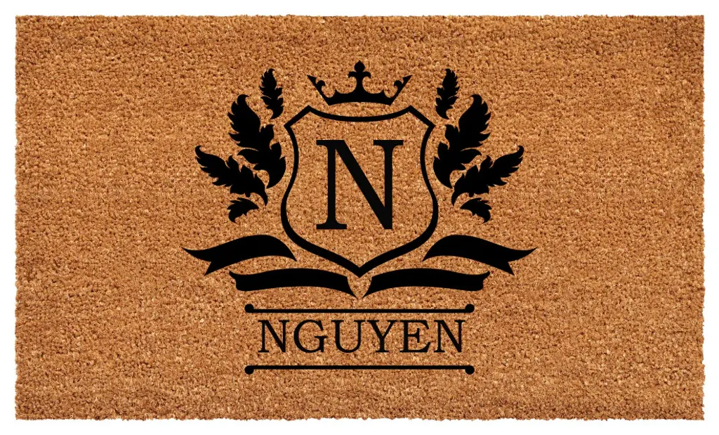 Durable, yet warm and inviting, this monogrammed doormat is an attractive, yet functional addition to any home decor. Made of heavy-duty rubber and natural coir that scrapes shoes clean, this resilient doormat absorbs moisture and stands up to foot traffic. Vacuum, sweep or lightly hose clean and allow to dry.