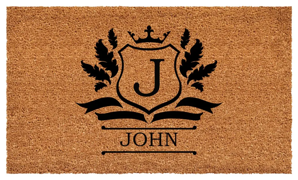 Brighten your home entry with this beautiful monogrammed doormat. Made of natural coir, a durable fiber that scrapes shoe bottoms clean, this doormat has a prominent double border that encases your initial and is vinyl backed to help prevent movement. Weather tolerant and colorfast, coir doormats absorb moisture and retain their shape. For best results, use in a sheltered area such as a covered porch, keeping extreme moisture and sunlight to a minimum. Vacuum, sweep or lightly hose clean.