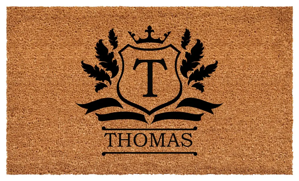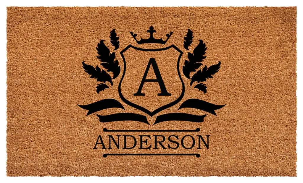 Brighten your home entry with this beautiful monogrammed doormat. Made of natural coir, a durable fiber that scrapes shoe bottoms clean, this doormat has a prominent double border that encases your initial and is vinyl backed to help prevent movement. Weather tolerant and colorfast, coir doormats absorb moisture and retain their shape. For best results, use in a sheltered area such as a covered porch, keeping extreme moisture and sunlight to a minimum. Vacuum, sweep or lightly hose clean.