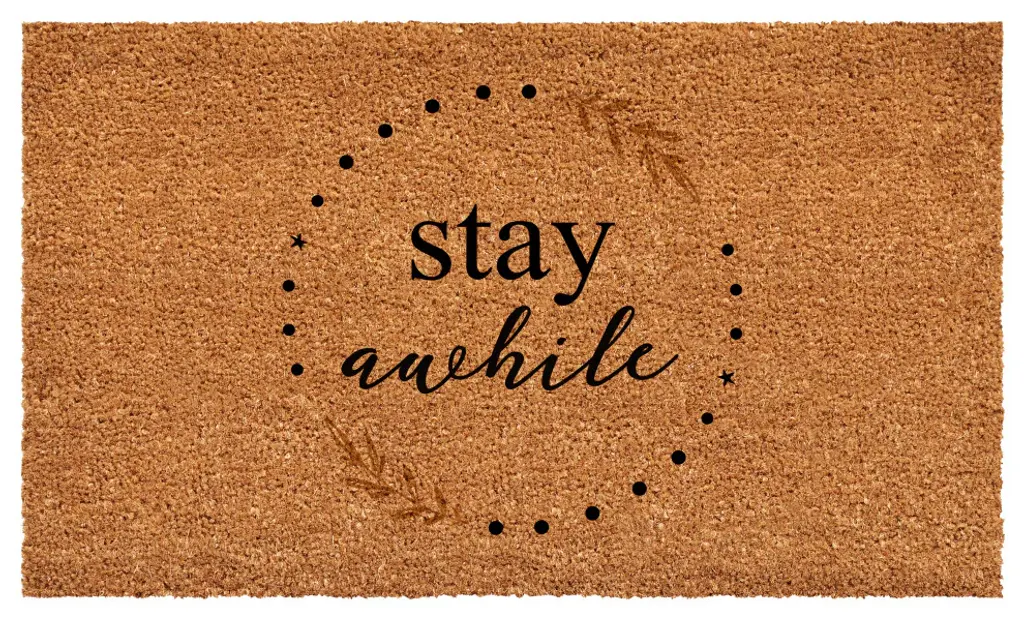 Made of natural coir, a dense fiber that is naturally mold and mildew resistant. Coir is a renewable resource that is durable and coarse, excellent for scraping shoes clean. Vinyl backed for increased durability and to help prevent movement, coir doormats are weather tolerant absorb moisture and retain their shape. For best results keep in a sheltered area such as a covered porch, keeping extreme moisture and sunlight to a minimum. Vacuum, sweep or lightly hose clean.