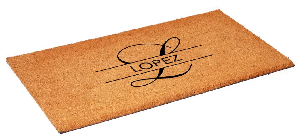 Durable, yet warm and inviting, this monogrammed doormat is a functional addition to any home decor. Made of heavy-duty rubber and natural coir that scrapes shoes clean, this resilient doormat absorbs moisture and stands up to foot traffic. Vacuum, sweep or lightly hose clean and allow to dry.