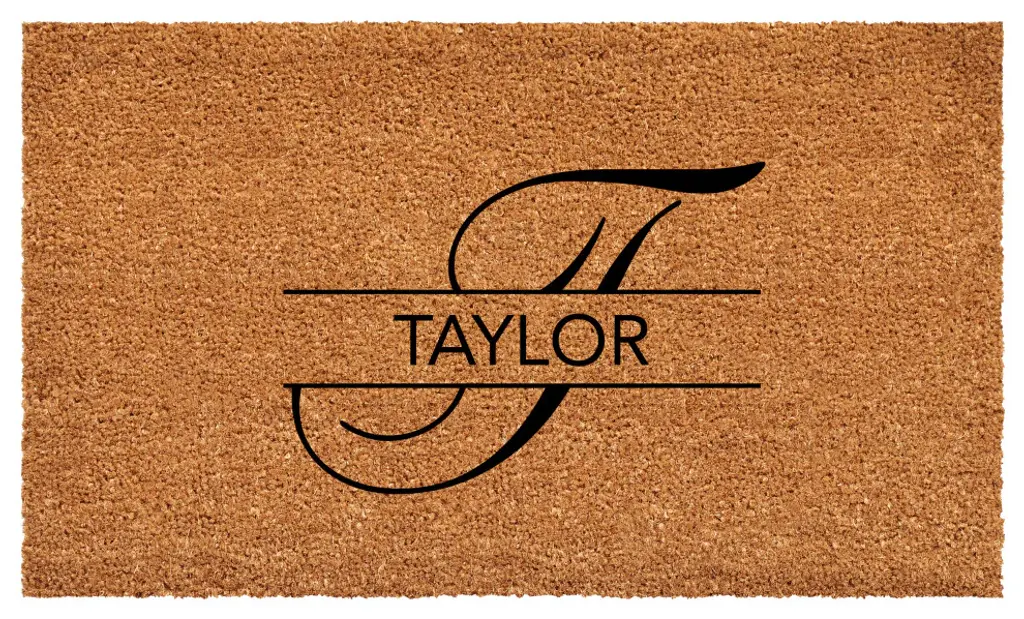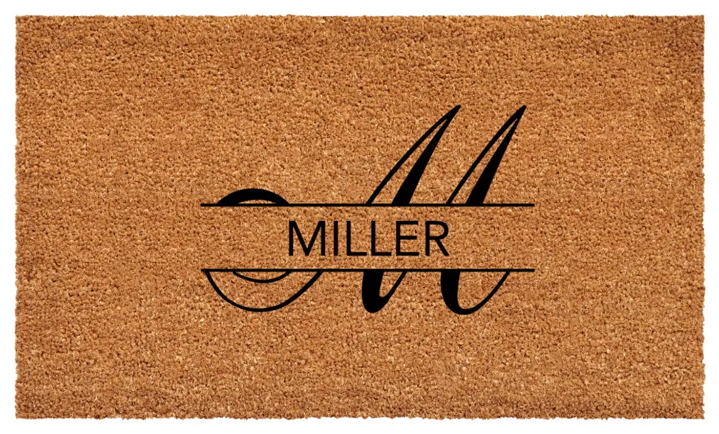 Durable, yet warm and inviting, this monogrammed doormat is a functional addition to any home decor. Made of heavy-duty rubber and natural coir that scrapes shoes clean, this resilient doormat absorbs moisture and stands up to foot traffic. Vacuum, sweep or lightly hose clean and allow to dry.
