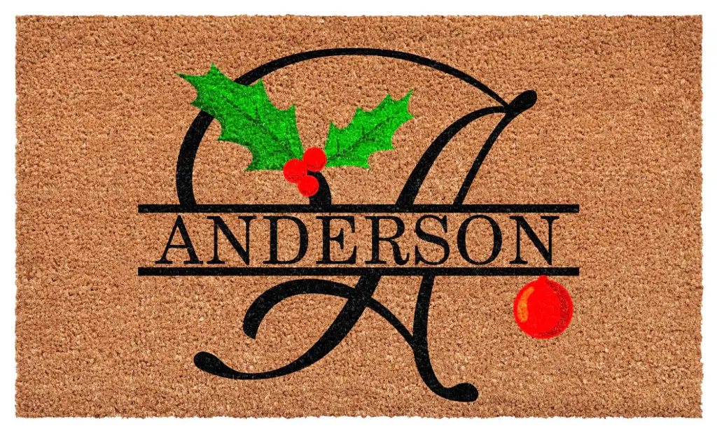Calloway Mills Personalized Christmas Holly Doormat, 17"x29"x0.60", Letter H