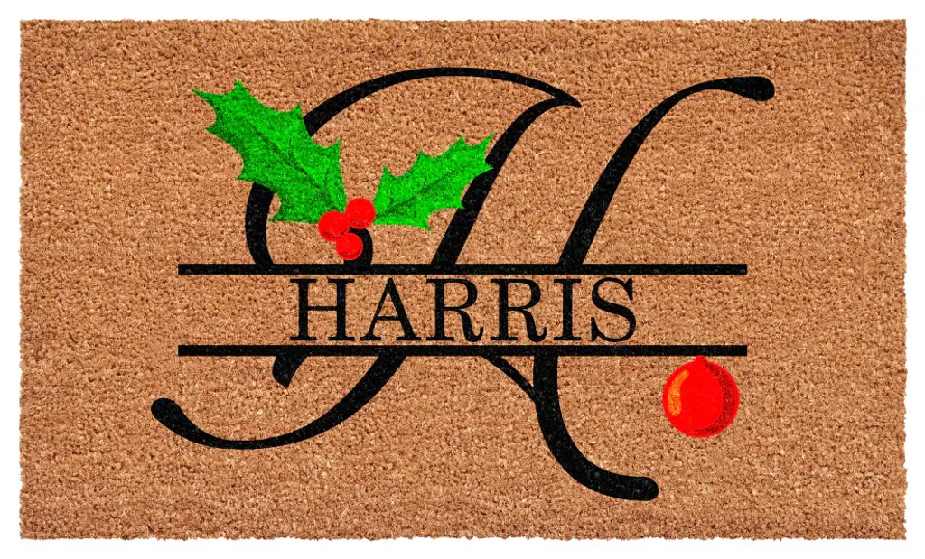 Calloway Mills Personalized Christmas Holly Doormat, 17"x29"x0.60", Letter I