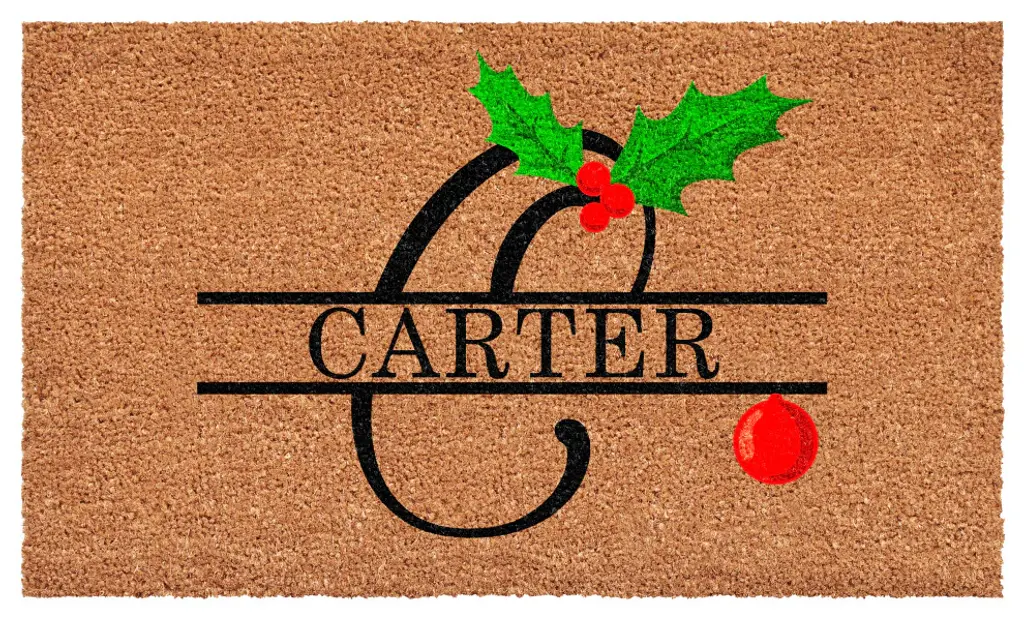 Calloway Mills Personalized Christmas Holly Doormat, 24"x36"x0.60", Letter C