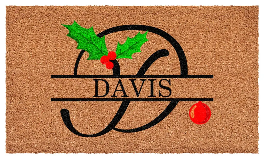 Calloway Mills Personalized Christmas Holly Doormat, 36"x72"x0.60", Letter D