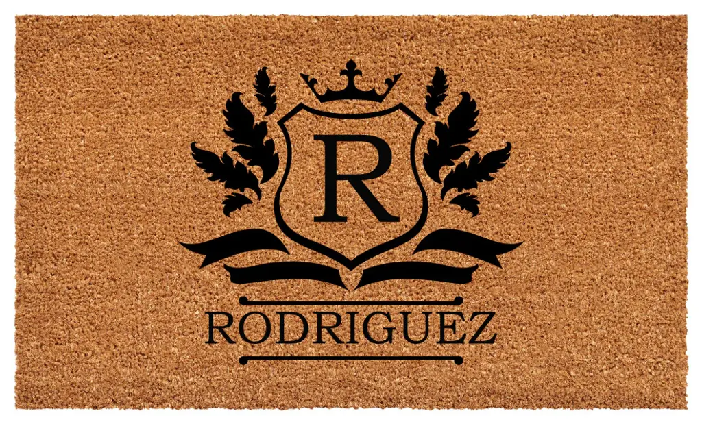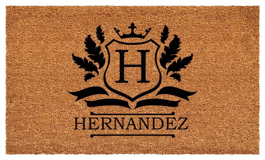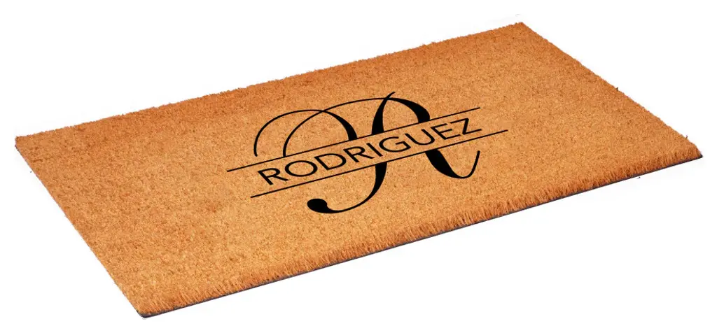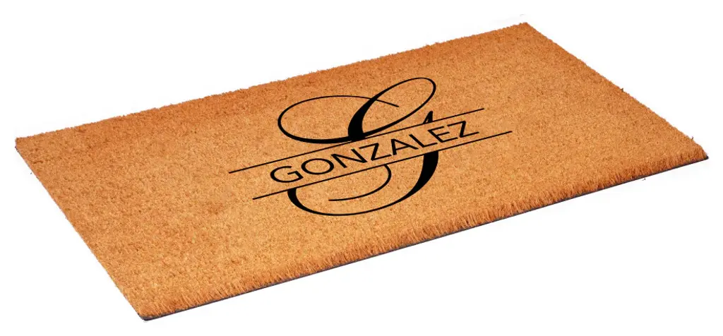 Durable, yet warm and inviting, this monogrammed doormat is a functional addition to any home decor. Made of heavy-duty rubber and natural coir that scrapes shoes clean, this resilient doormat absorbs moisture and stands up to foot traffic. Vacuum, sweep or lightly hose clean and allow to dry.