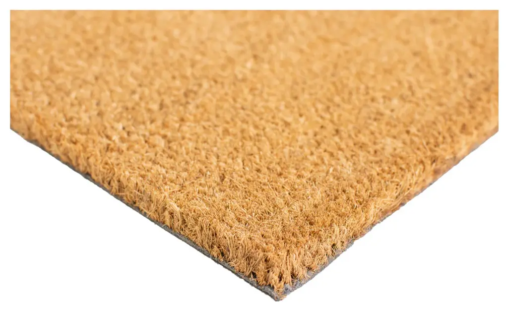 Brighten your home entry with this beautiful monogrammed doormat. Over-sized to provide more coverage, this doormat is made of natural coir, a durable fiber that scrapes shoe bottoms clean, it has a prominent double border that encases your initial and is vinyl backed to help prevent movement. Weather tolerant and colorfast, coir doormats absorb moisture and retain their shape. For best results, use in a sheltered area such as a covered porch, keeping extreme moisture and sunlight to a minimum. Vacuum, sweep or lightly hose clean.