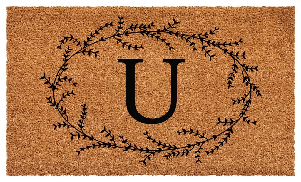 Calloway Mills Rustic Leaf Vine Monogrammed Doormat, 30"x48", Letter U