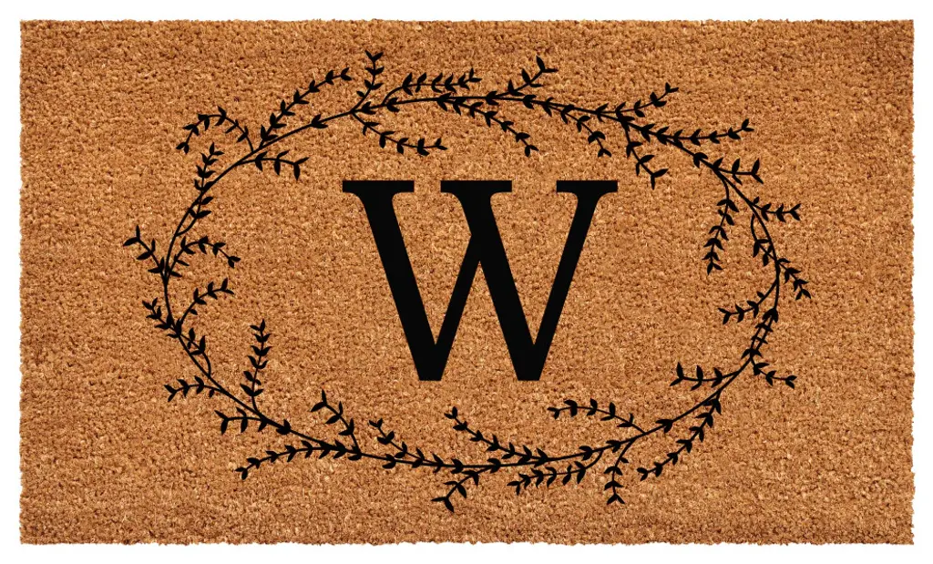 Extra-large for a grand, dramatic look, this stunning monogrammed doormat is made of natural coir, a durable, dense fiber that scrapes shoes clean. Vinyl backed for increased durability and to help prevent movement, this mat is weather tolerant, absorbs moisture and will not mat down regardless of the traffic. For best results, use in a sheltered area such as a covered porch, keeping extreme moisture and sunlight to a minimum. Vacuum, sweep or lightly hose clean.
