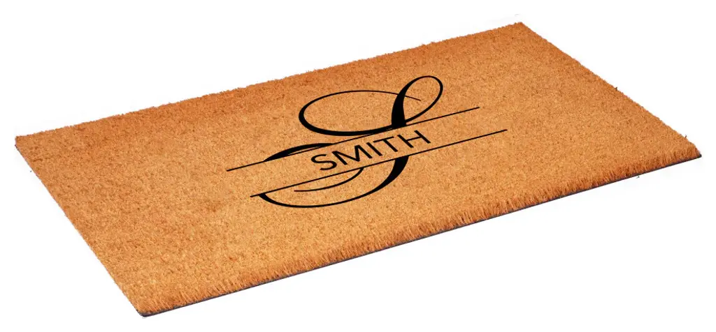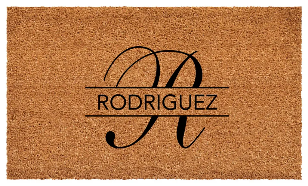 Durable, yet warm and inviting, this monogrammed doormat is a functional addition to any home decor. Made of heavy-duty rubber and natural coir that scrapes shoes clean, this resilient doormat absorbs moisture and stands up to foot traffic. Vacuum, sweep or lightly hose clean and allow to dry.