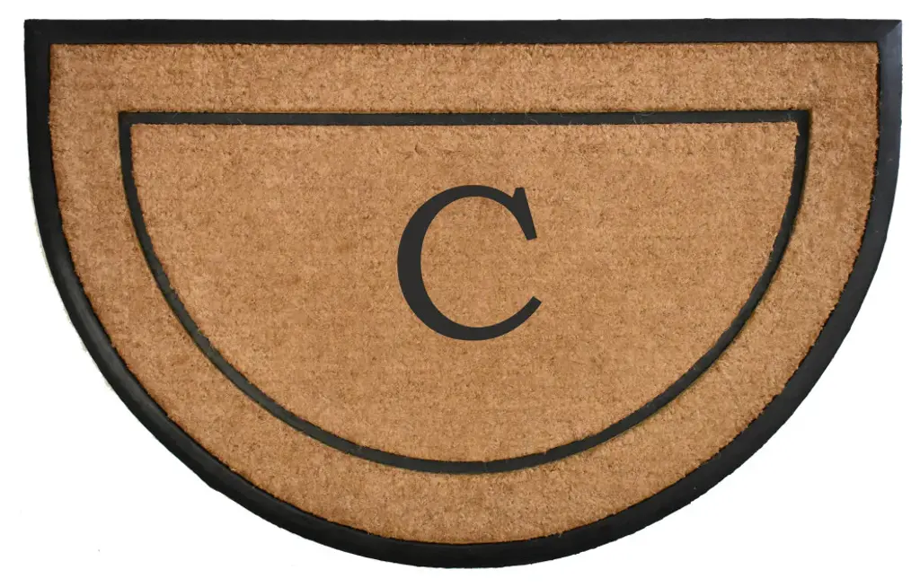 Durable, yet warm and inviting, this monogrammed doormat is a functional addition to any home decor. Made of heavy-duty rubber and natural coir that scrapes shoes clean, this resilient doormat absorbs moisture and stands up to foot traffic. Vacuum, sweep or lightly hose clean and allow to dry.