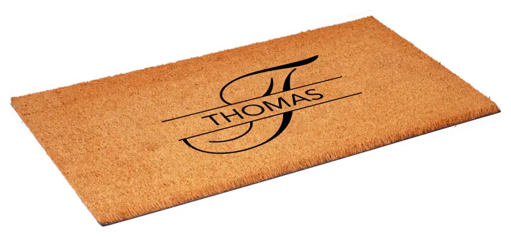 Durable, yet warm and inviting, this monogrammed doormat is a functional addition to any home decor. Made of heavy-duty rubber and natural coir that scrapes shoes clean, this resilient doormat absorbs moisture and stands up to foot traffic. Vacuum, sweep or lightly hose clean and allow to dry.
