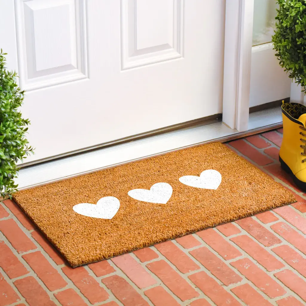 Calloway Mills White Trio Heart Doormat, 17" X 29"