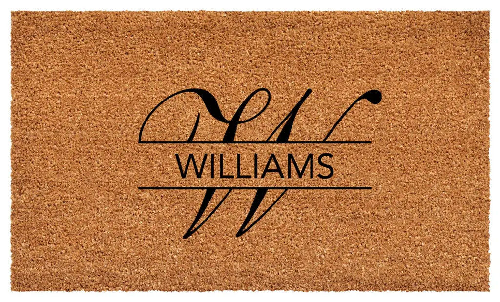 Durable, yet warm and inviting, this monogrammed doormat is a functional addition to any home decor. Made of heavy-duty rubber and natural coir that scrapes shoes clean, this resilient doormat absorbs moisture and stands up to foot traffic. Vacuum, sweep or lightly hose clean and allow to dry.