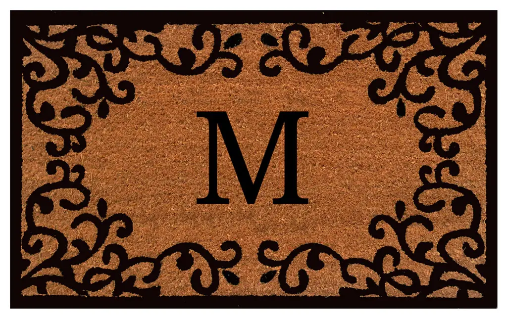 Enhance the appearance of your entryway with this beautiful, French inspired design that is made of natural coir, a fiber known for its durability and all-weather tolerance. Vinyl backed for added strength and to help prevent movement, this doormat has an elegant center monogram, stands up to traffic and absorbs moisture. Sweep, vacuum or lightly hose clean and allow to dry.