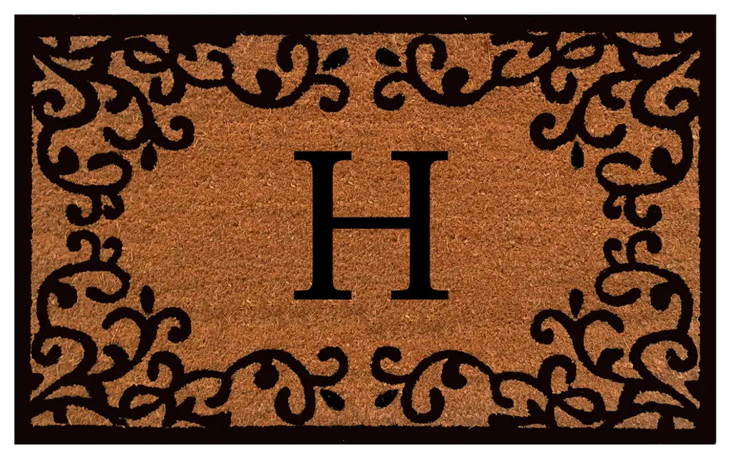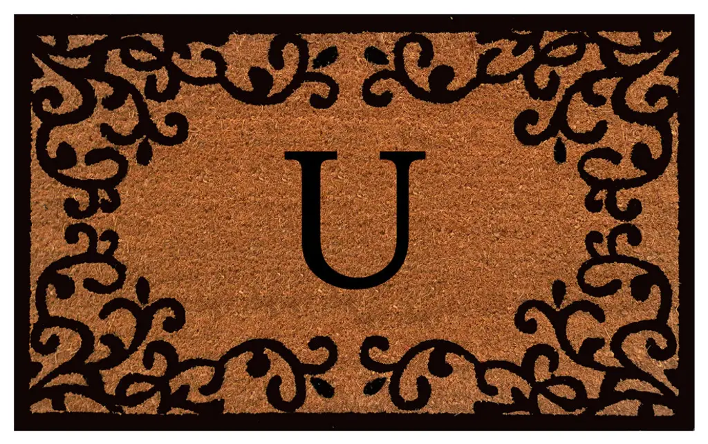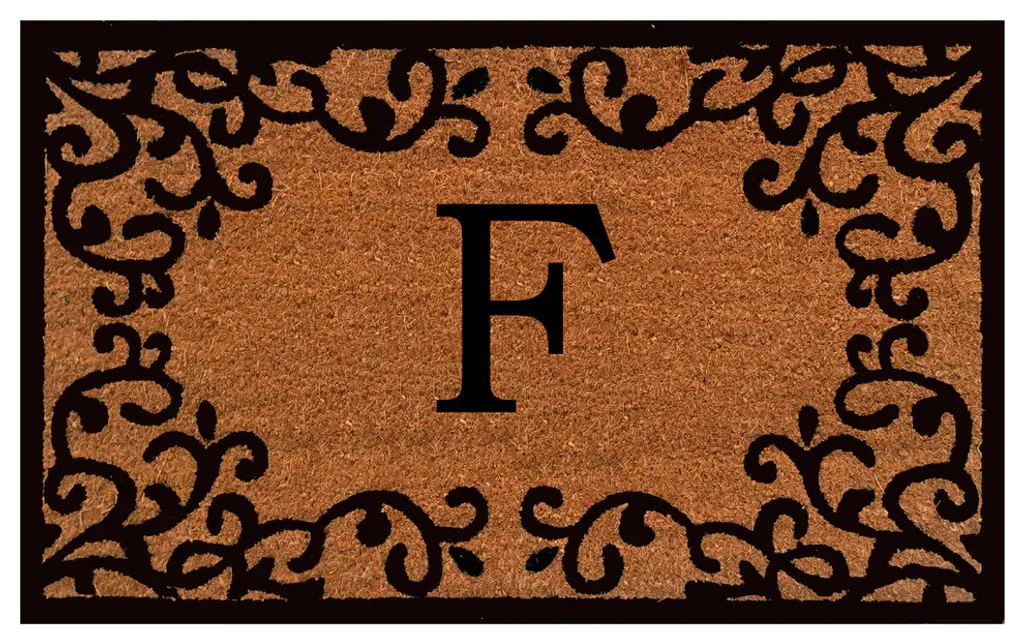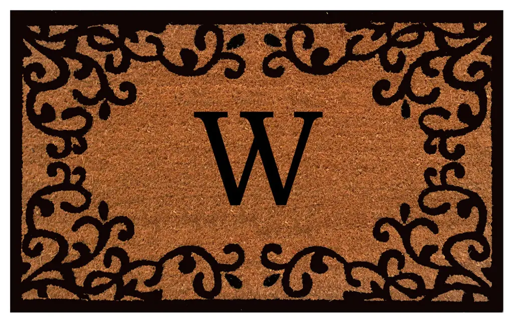 Enhance the appearance of your entryway with this beautiful, French inspired design that is made of natural coir, a fiber known for its durability and all-weather tolerance. Vinyl backed for added strength and to help prevent movement, this doormat has an elegant center monogram, stands up to traffic and absorbs moisture. Sweep, vacuum or lightly hose clean and allow to dry.