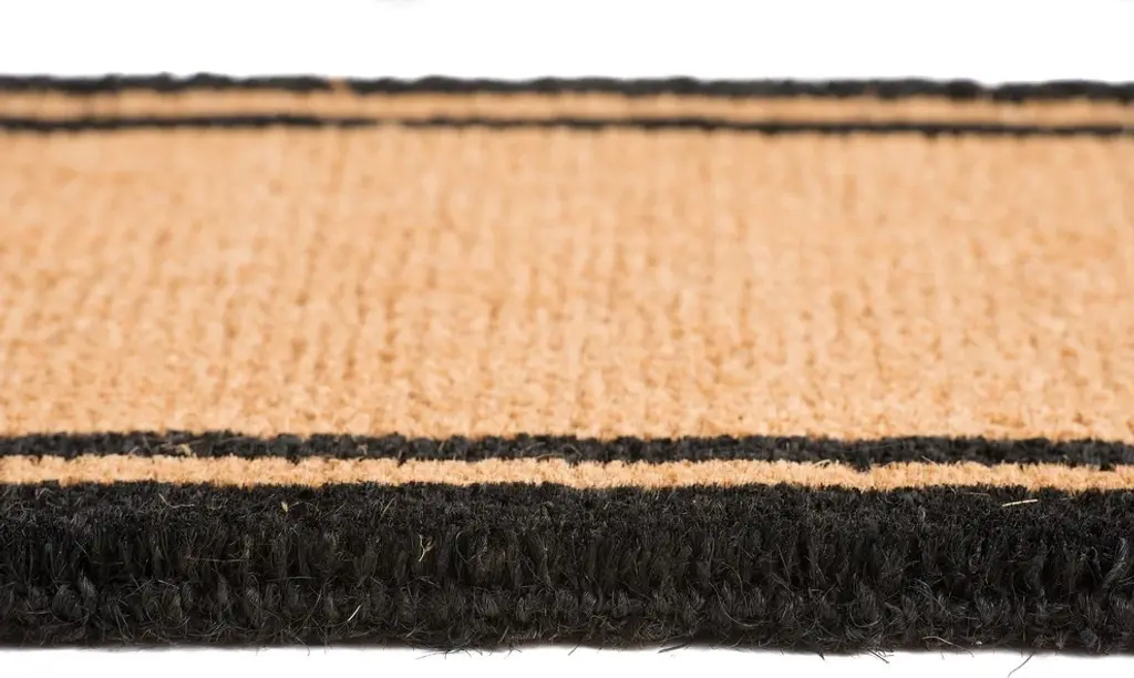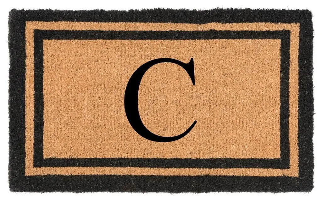 Welcome your guests with this traditional personalized coconut husk welcome mat. This 2" thick mat features a black double border frame with a bold monogrammed letter of your choice for a personalized touch. With a strong non slip vinyl back, your mat will be sure to remain in place no matter how much foot traffic you may have. This is a great custom item that will keep your shoes and house clean.