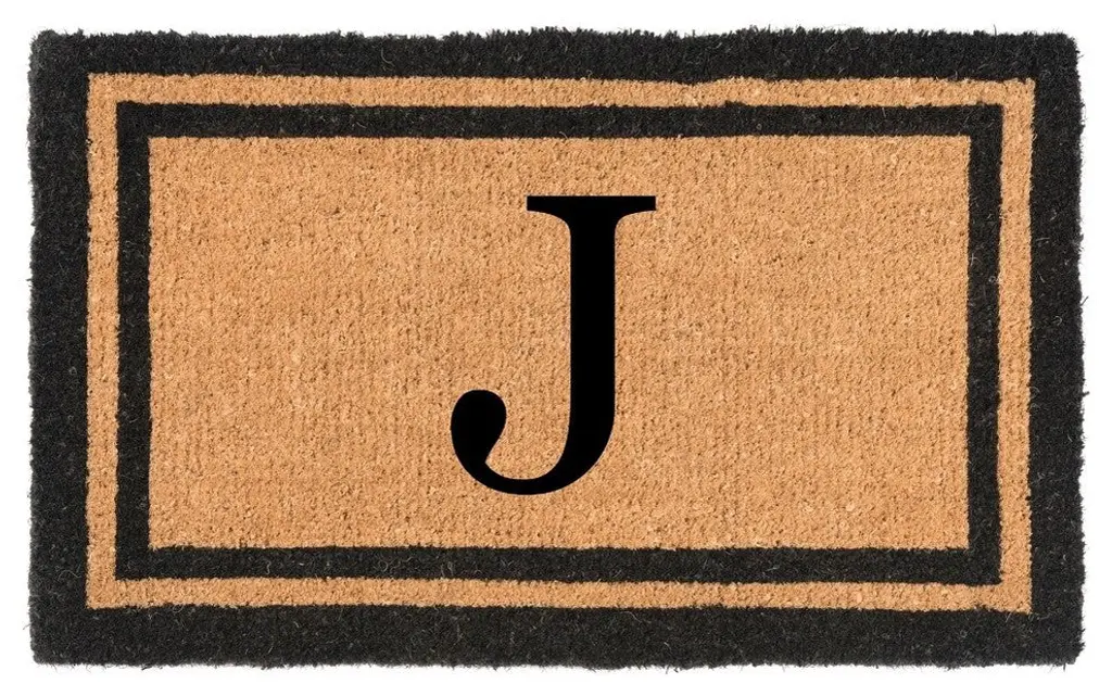 Welcome your guests with this traditional personalized coconut husk welcome mat. This 2" thick mat features a black double border frame with a bold monogrammed letter of your choice for a personalized touch. With a strong non slip vinyl back, your mat will be sure to remain in place no matter how much foot traffic you may have. This is a great custom item that will keep your shoes and house clean.