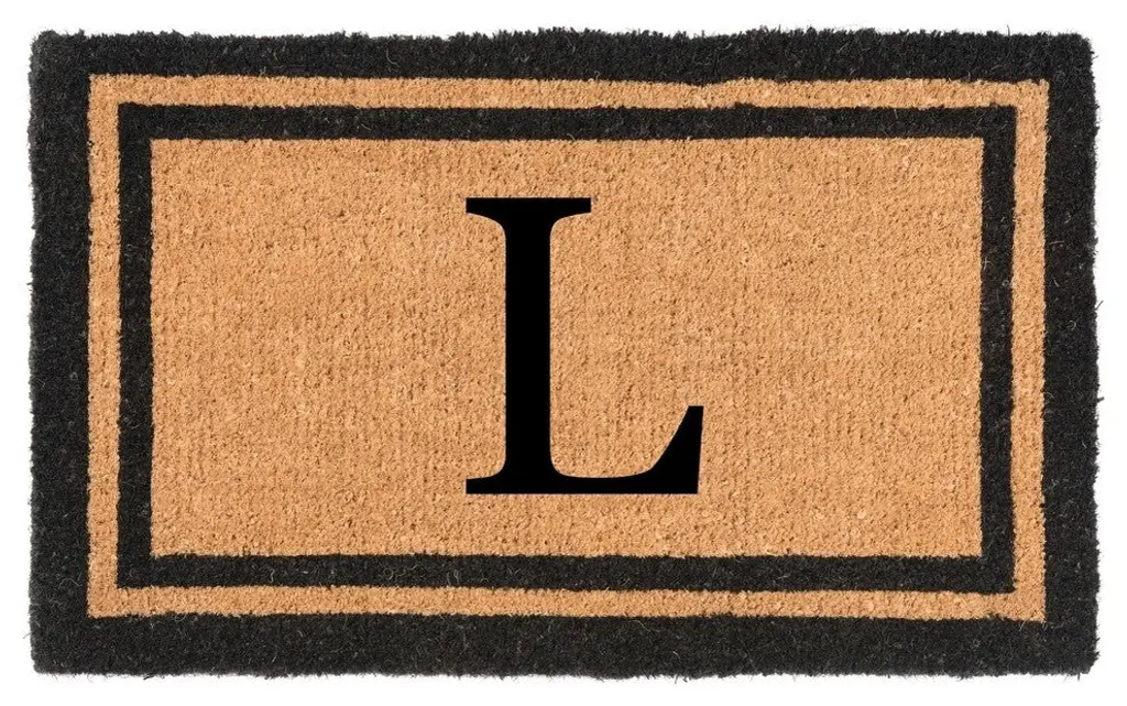 Welcome your guests with this traditional personalized coconut husk welcome mat. This 2" thick mat features a black double border frame with a bold monogrammed letter of your choice for a personalized touch. With a strong non slip vinyl back, your mat will be sure to remain in place no matter how much foot traffic you may have. This is a great custom item that will keep your shoes and house clean.