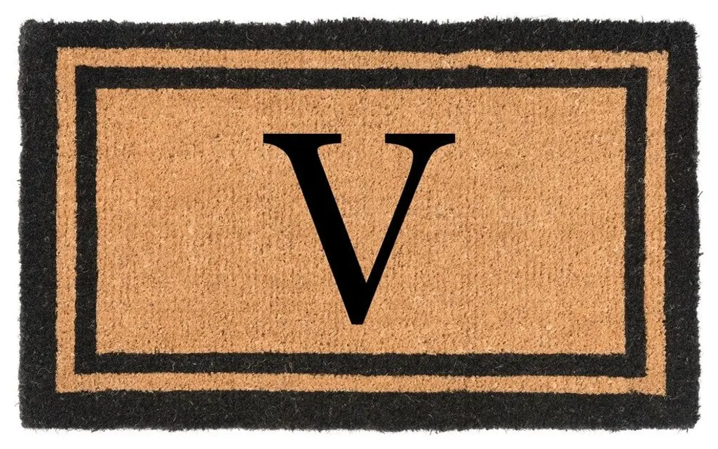 Welcome your guests with this traditional personalized coconut husk welcome mat. This 2" thick mat features a black double border frame with a bold monogrammed letter of your choice for a personalized touch. With a strong non slip vinyl back, your mat will be sure to remain in place no matter how much foot traffic you may have. This is a great custom item that will keep your shoes and house clean.