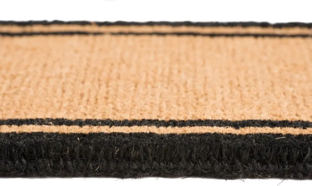 Welcome your guests with this traditional personalized coconut husk welcome mat. This 2" thick mat features a black double border frame with a bold monogrammed letter of your choice for a personalized touch. With a strong non slip vinyl back, your mat will be sure to remain in place no matter how much foot traffic you may have. This is a great custom item that will keep your shoes and house clean.