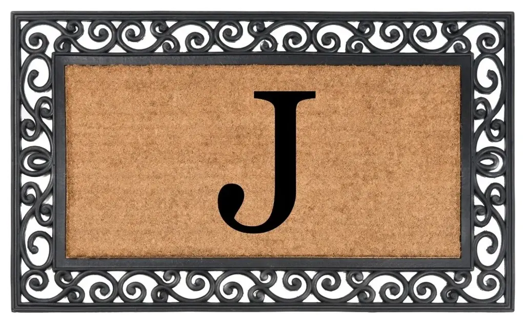 Welcome your guests with this traditional personalized coconut husk rubber welcome mat. This mat features a durable rubber border frame with a bold monogrammed letter of that will last. This is a great customized item that will keep your shoes and house clean.