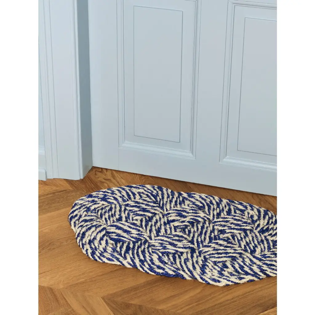 Coco Swirl Door Mat, Blue - Off-White