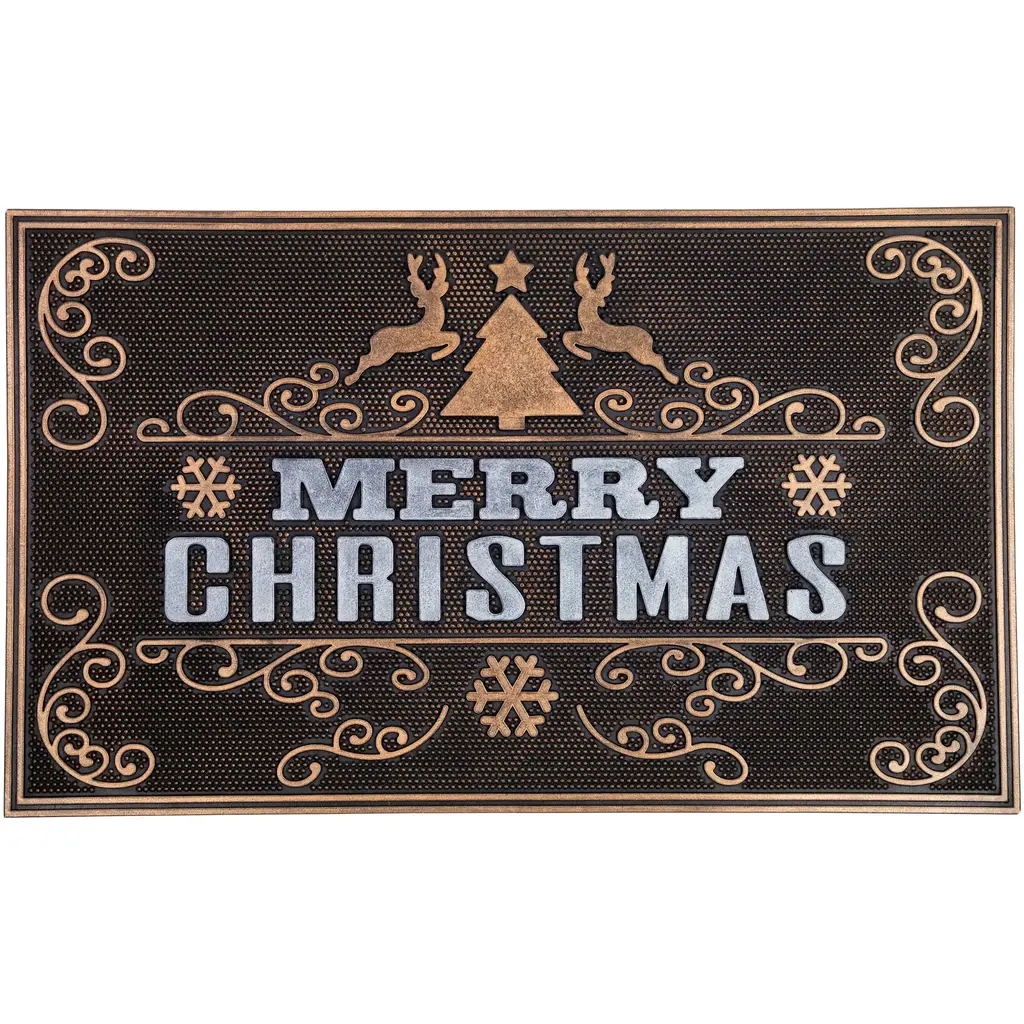 Copper And Silver Merry Christmas Reindeer Christmas Doormat 29 X 18 - Gold
