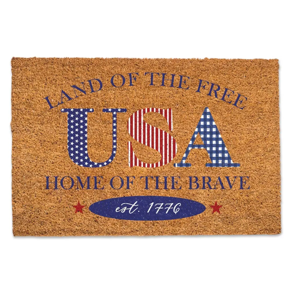 Add a red, white and blue touch to your front porch this Patriotic season with this coir door mat. Designed and printed in the United States on quality materials, this is an item you’re sure to love. Welcome your guests into your home in style with these door mats that are UV printed on premium quality coir. 30 x 20 x 0.75 UV printed on premium quality coir - colors may vary or darken against the brown of the mat To maintain vivid colors, avoid direct exposure to sunlight Vinyl backing Water and mildew resistant Designed and printed in the USA Care instructions: Shake well periodically to prevent dirt buildup and maintain the appearance of the door mat
