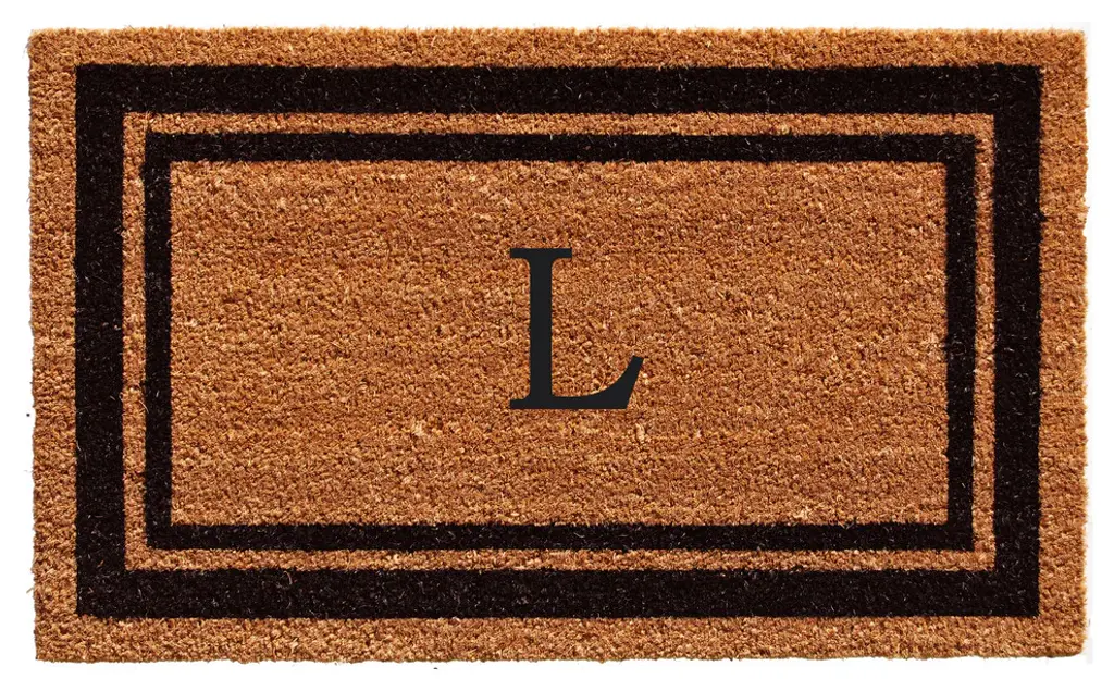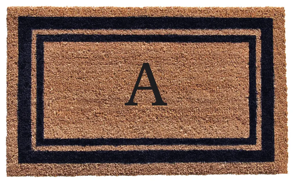 Brighten your home entry with this beautiful monogrammed doormat. Made of natural coir, a durable fiber that scrapes shoe bottoms clean, this doormat has a prominent double border that encases your initial and is vinyl backed to help prevent movement when walked on. Weather tolerant and colorfast, coir doormats absorb moisture, retain their shape and do not mat down regardless of the traffic. Vacuum, shake or lightly hose clean and allow to dry.