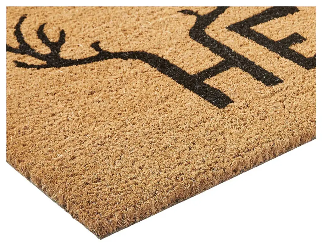 Over-sized to provide more coverage, this beautiful doormat is made of natural coir, a durable, dense fiber that scrapes shoes clean. Vinyl backed for increased durability and to help prevent movement, this mat is weather tolerant, absorbs moisture and will not mat down regardless of the traffic. Vacuum, sweep or lightly hose clean.