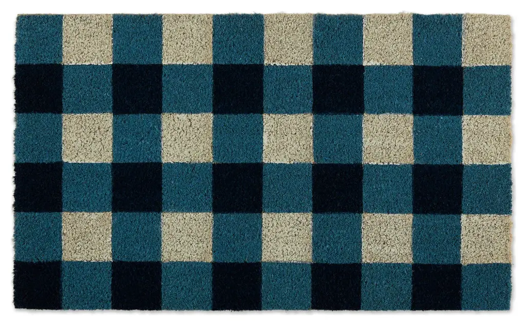 DII Navy & White Buffalo Check DoormatDoormat measures 18x30", 100% natural coir fiber provides an excellent shoe scrapping surface for brushing dirt, slush and mud off shoes and boots. Easily scrape off dirt, dust, grit, mud, grass or snow. Durable PVC backing provides nonslip stability with maximum grip to prevent you to skid while you walk. Heavy duty & durable rug carpet widely used for all weather outdoor front door, exterior patio entry way, porch door, garage, laundry room, garden, winter, commercial deal with high traffic inside and outside. DII offers these doormats with fun, cute designs to add to your doorway, including seasonal designs.