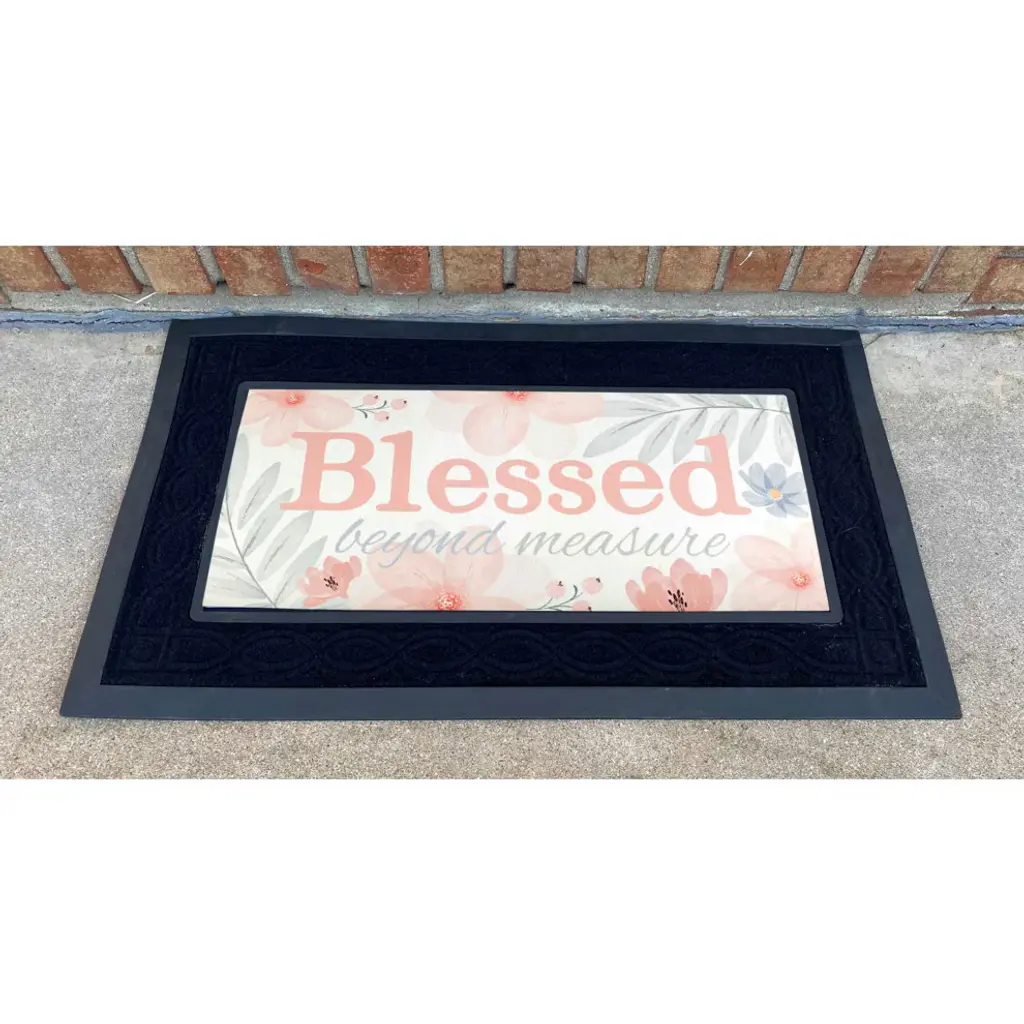 Blessed. Attractive and inspiring, this doormat insert fits perfectly into our doormat base to create a look you will love. Made with mildew-resistant polyethylene terephthalate fibers, it helps to quickly clean and dry shoes. Rubber backing holds insert firmly in the base. Size of insert is approximately 22x10. Insert only - doormat base tray sold separately, SKU# 20018.