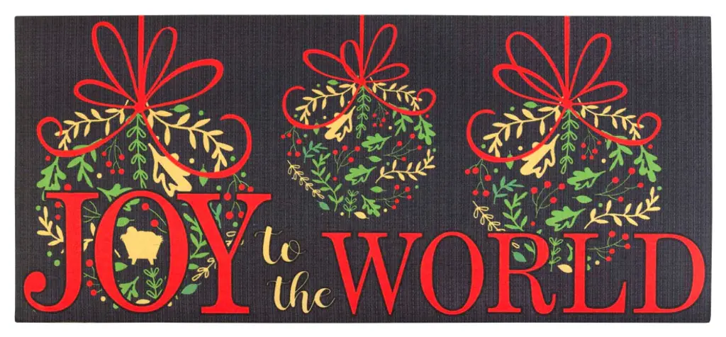Joy To The World. Attractive and inspiring, this doormat insert fits perfectly into our doormat base to create a look you will love. Made with mildew-resistant polyethylene terephthalate fibers, it helps to quickly clean and dry shoes. Rubber backing holds insert firmly in the base. Size of insert is approximately 22x10. Insert only - doormat base tray sold separately, SKU# 20018.