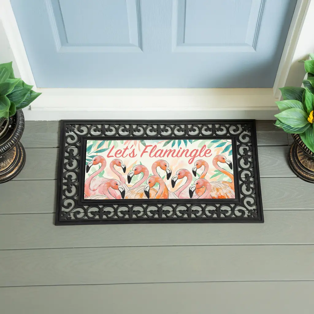 Pelican. Attractive and inspiring, this doormat insert fits perfectly into our doormat base to create a look you will love. Made with mildew-resistant polyethylene terephthalate fibers, it helps to quickly clean and dry shoes. Rubber backing holds insert firmly in the base. Size of insert is approximately 22x10. Insert only - doormat base tray sold separately, SKU# 20018.