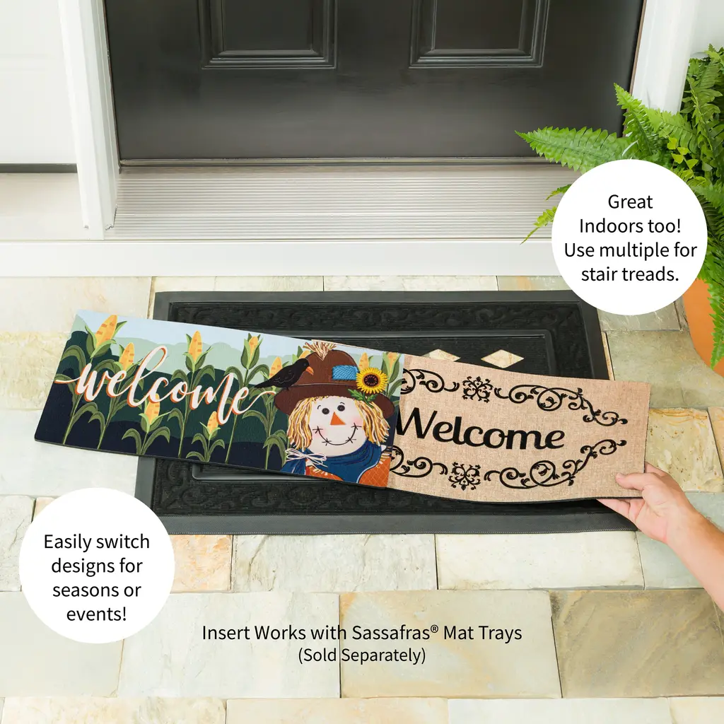 Attractive and inspiring, this doormat insert fits perfectly into our doormat base to create a look you will love. Made with mildew-resistant polyethylene terephthalate fibers, it helps to quickly clean and dry shoes. Rubber backing holds insert firmly in the base. Size of insert is approximately 22x10. Insert only - doormat base tray sold separately, SKU# 20018.