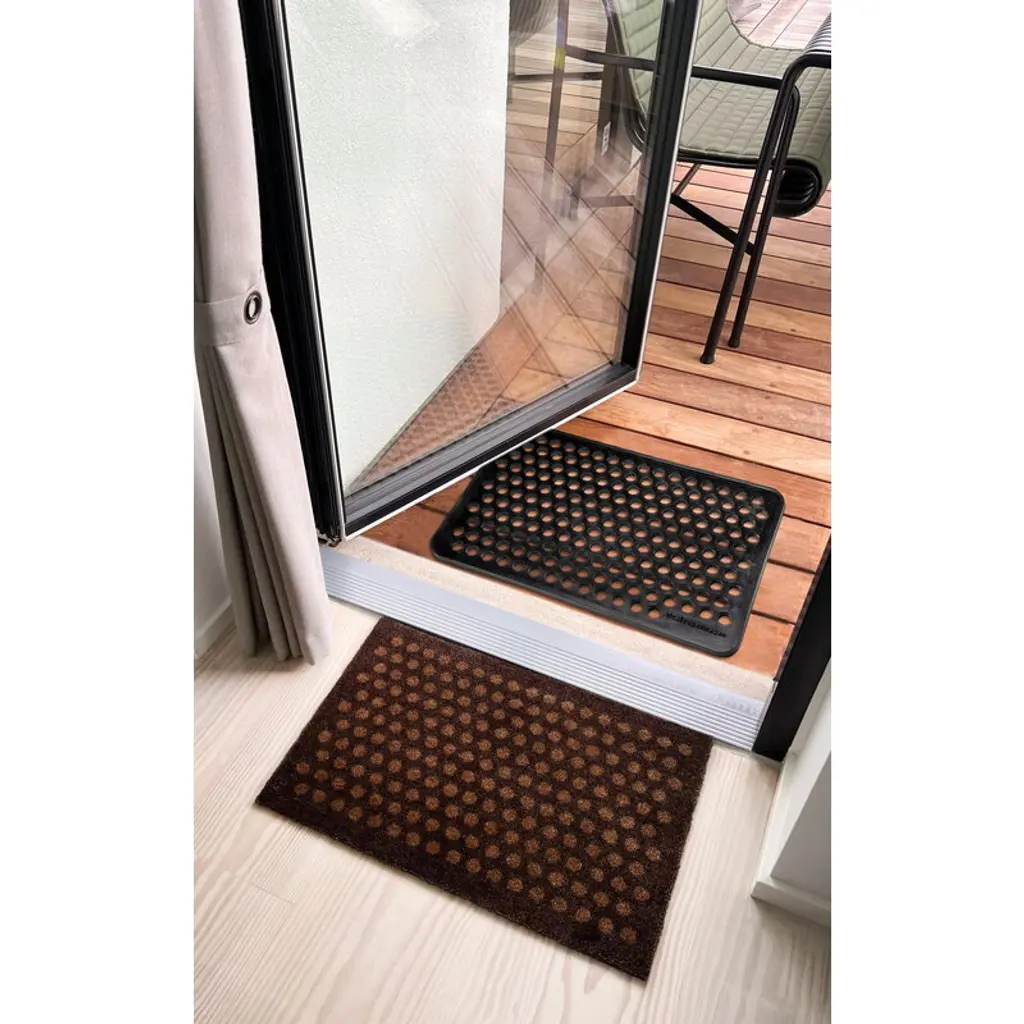 Tica Copenhagen's Dot doormat is a beautiful and practical addition to both the hallway and even outdoors – the sturdy doormat is designed for both indoor and outdoor use. Made of dense rubber the Dot doormat stays firmly in place on all types of surfaces and is easy to clean by vacuuming or rinsing.