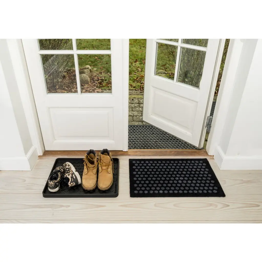 Tica Copenhagen's Dot doormat is a beautiful and practical addition to both the hallway and even outdoors – the sturdy doormat is designed for both indoor and outdoor use. Made of dense rubber the Dot doormat stays firmly in place on all types of surfaces and is easy to clean by vacuuming or rinsing.