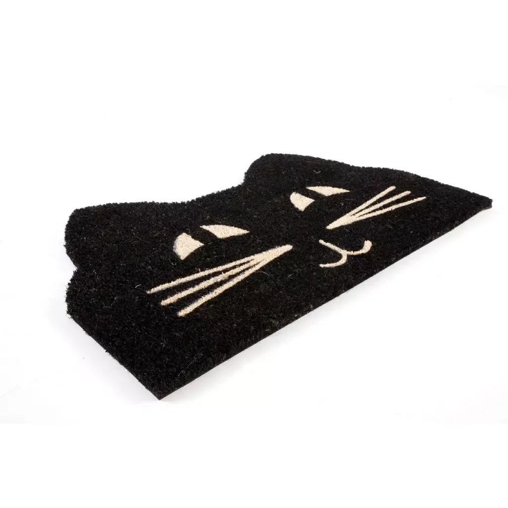 Your visitors will be happy to cross paths with Entryways' cat-shaped "Cat Face" doormat, especially when they see the friendly face of this black feline, whiskers and all, smiling up at them. This mat measures 17” by 28” and is crafted to the industry’s highest standards. Made from all-natural coir, it has a PVC backing and is 1/2" thick.